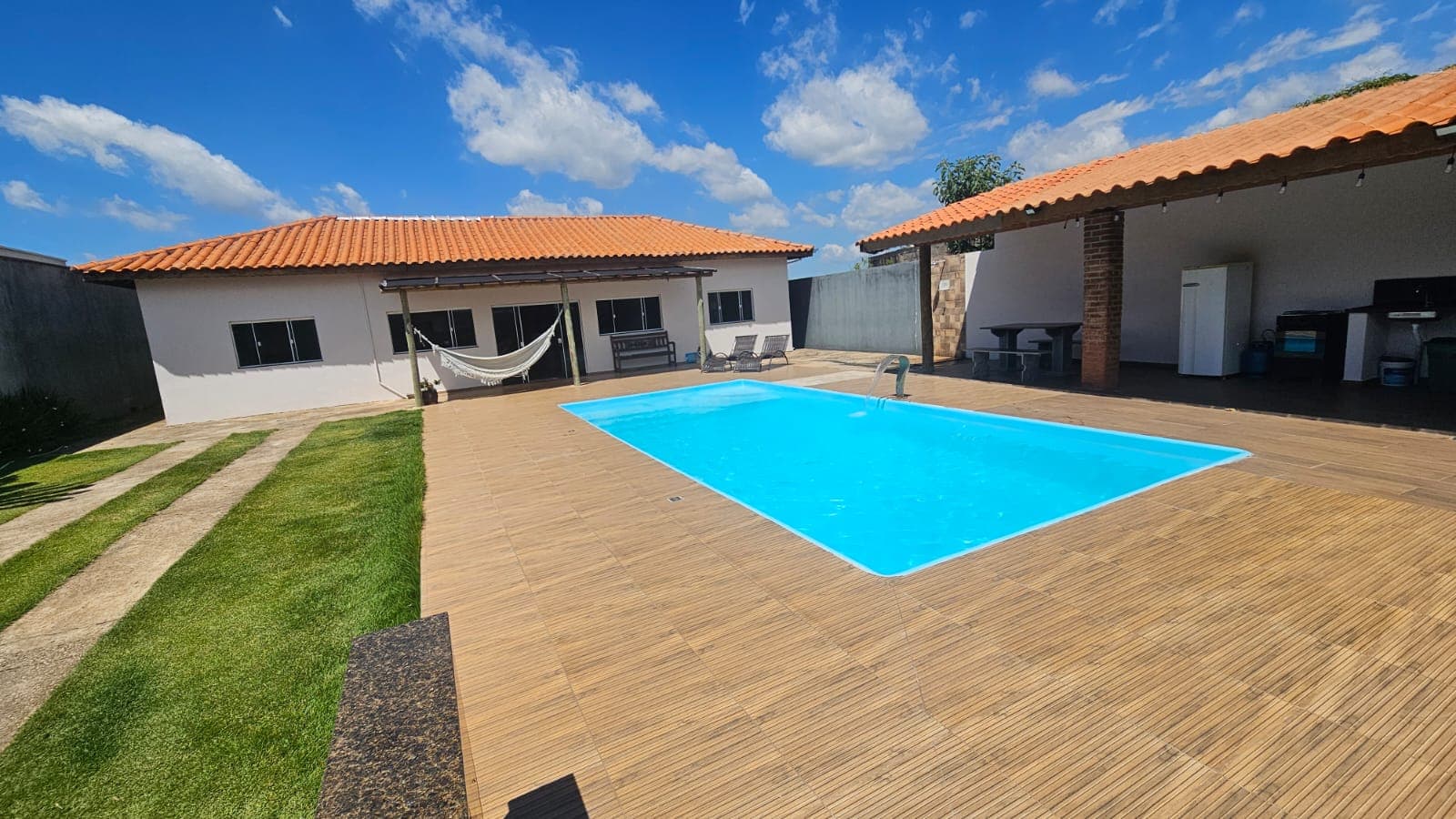 Você poderá aproveitar dias ensolarados na piscina com dimensões de 4m X 8m e que é perfeita para se refrescar e relaxar. Além disso, a chácara possui uma churrasqueira, ideal para deliciosos churrascos com amigos e familiares, além de uma vista maravilhosa da região 🍖